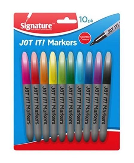 Signature Jot It Fine Tip Coloured Markers - Assorted Colours - Pack of 10