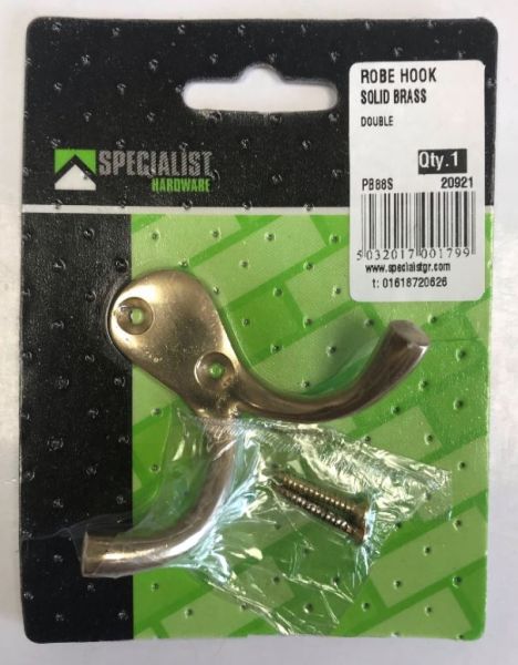 Specialist Hardware Solid Brass Double Wardrobe Hook with Screws - 12 x 9cm