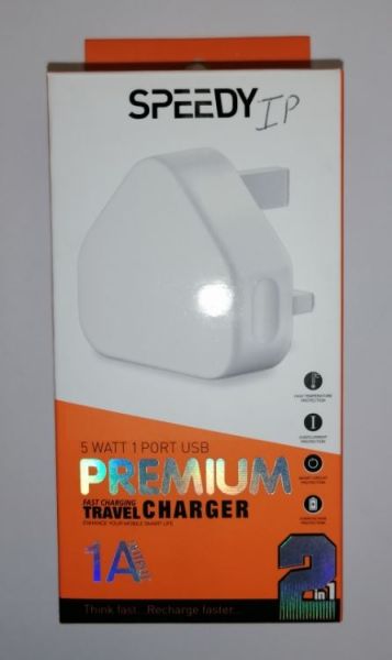 Uk Mains Usb 3 Pin Power Wall Plug Adapter - 1 Amp - Colours May Vary - Non Carded