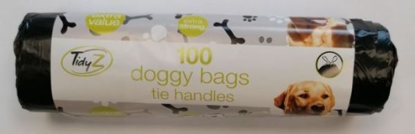 Tidyz Extra Strong Doggy Bags with Tie Handles - 34 x 30cm - Pack Of 100