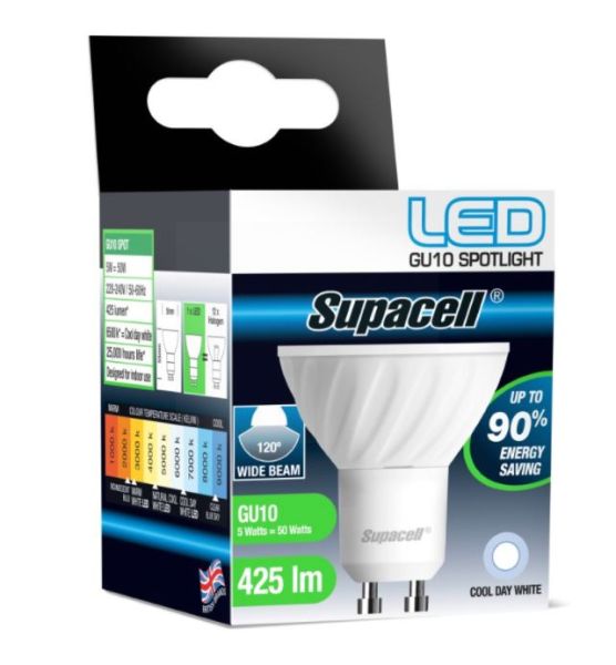 Supacell Led Gu10 Spot Pin Base Wide Beam 5W Light Bulb - Warm White