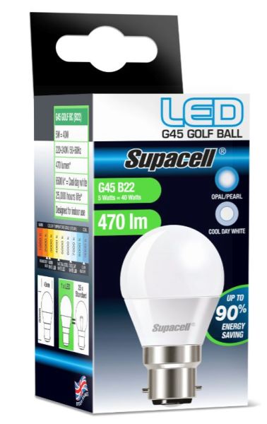 - SUPACELL LED G45 GOLF BC (B22) BASE 5W ENERGY SAVING LIGHT BULB