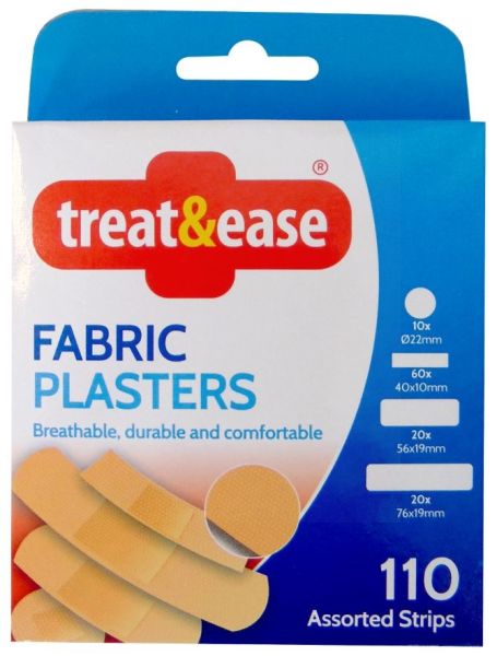 Treat & Ease Fabric Plasters - Assorted Strips - Pack Of 110 - Exp: 03/24