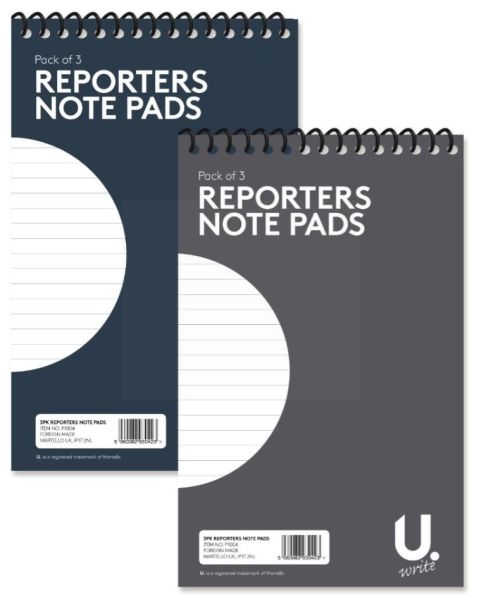 Reporters Writing Pads - Pack Of 3 - Approximate Size: 5" x 8" - 45 Sheets Per Pad