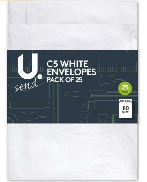 U Send C5 Peal & Seal Envelopes - White - 80GSM - 22.5 x 16cm - Pack Of 25