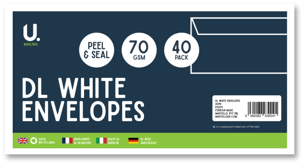 U Send DL Peal & Seal Envelopes - White - 70GSM - 22 x 11cm - Pack Of 40