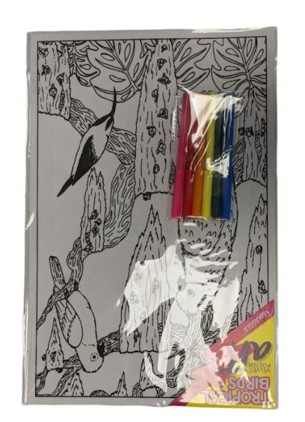Velvet Poster Art with Assorted Coloured Pens - Tropical Birds 1 - 38 x 25cm