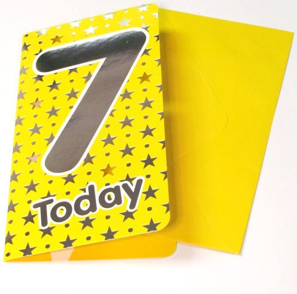 YELLOW STARS BIRTHDAY CARD AGE 7